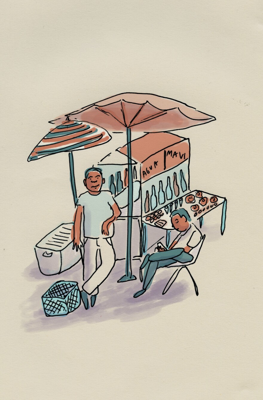 Suarez wakes up early in the morning to wait in line for it. He's not selling as many piraguas as he used to, but he still has customers looking for relief in the 80 degree heat.