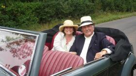 Sir Terry Wogan and Caroline Quentin seek profits--in a classic 1948 Jaguar MK 4.