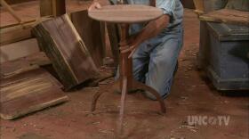 With its turned top and dovetailed legs, this walnut tripod table is a American design.