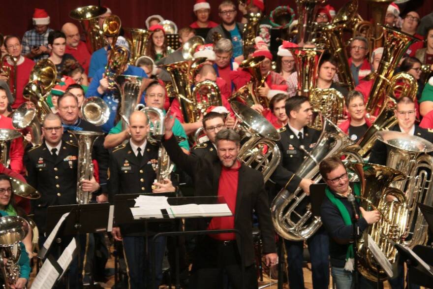 “So the really neat thing that happens at TubaChristmas, for me, is that you’ll have a sixth-grade student who’s been four months on their instrument sitting next to somebody who’s been playing for 30 years,” Zilincik said. “They get to interact, and they talk. So if there’s a young student who can’t play all the notes yet, I say, ‘Just don’t play the ones you can’t play. And sit and listen, because there’s 200 people around you that are going to play.’ ”