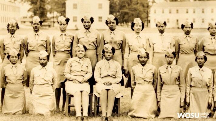 An all-black, all-woman squadron from the 318th Army Air Forces Base Unit at an Ohio Army Air Base.