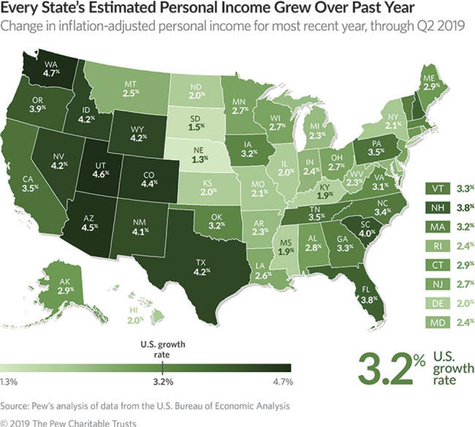 Biernacka-Lievestro said these trends matter to individuals and families, as well as to state governments. States use the metric to help plan budgets, set spending limits, and estimate public service needs. Federal officials use state personal income to determine how much money to allocate for programs such as Medicaid.